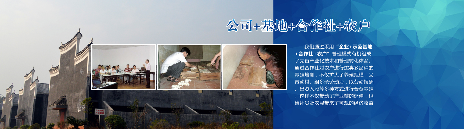 永州異蛇養殖專業合作社成立于2009年5月,隸屬于永州市異蛇科技實業有限公司全資子公司,現已擁有合作社成員近70人,室外生態養殖面積達210畝,室內控溫養殖蛇場面積達3000平方米。合作社目前成功掌握了基因育種、仿生態立體養殖、無冬眠養殖、疾病防治等相關技術。蛇類規模化養殖品種有眼鏡蛇、尖吻蝮蛇(五步蛇)、水律蛇、烏梢蛇、銀環蛇、王錦蛇等多種,年養殖量30萬余條。其中《眼鏡蛇的規模化人工養殖技術》已獲得了湖南省科技進步三等獎,《尖吻…